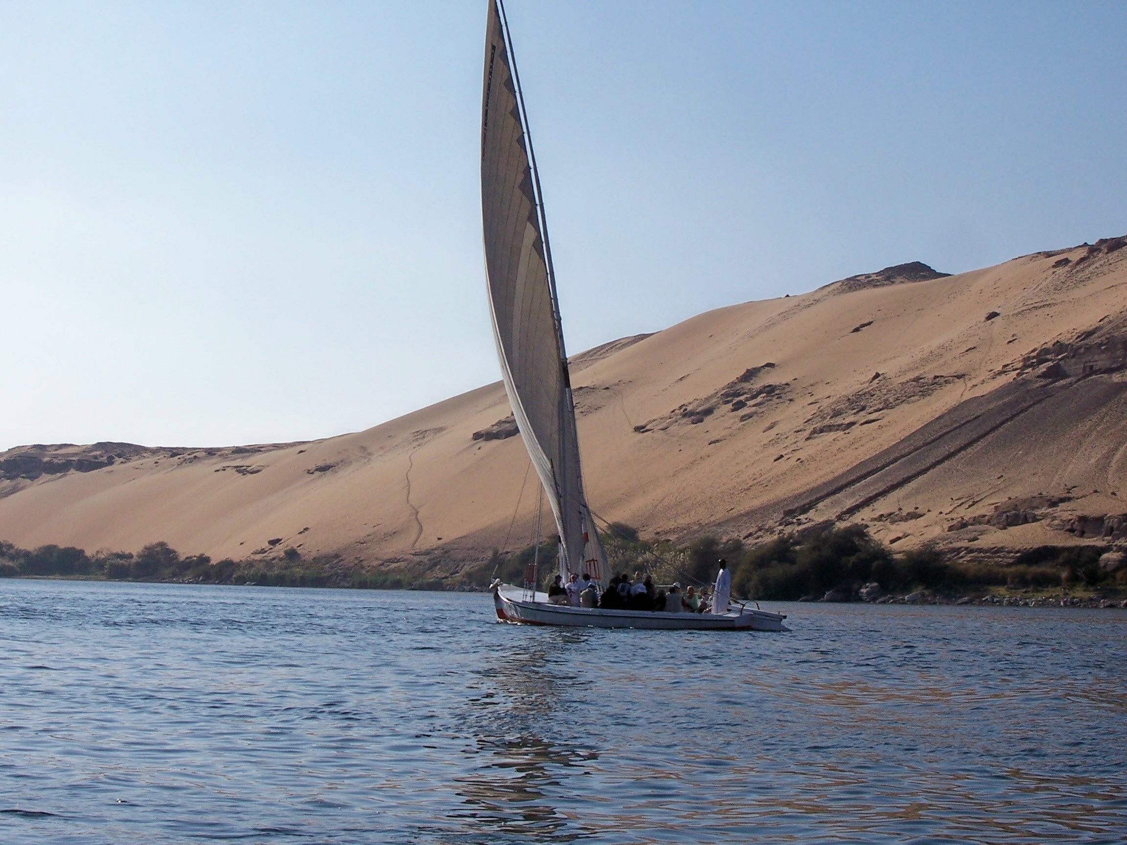Aswan – felucca with sand hill