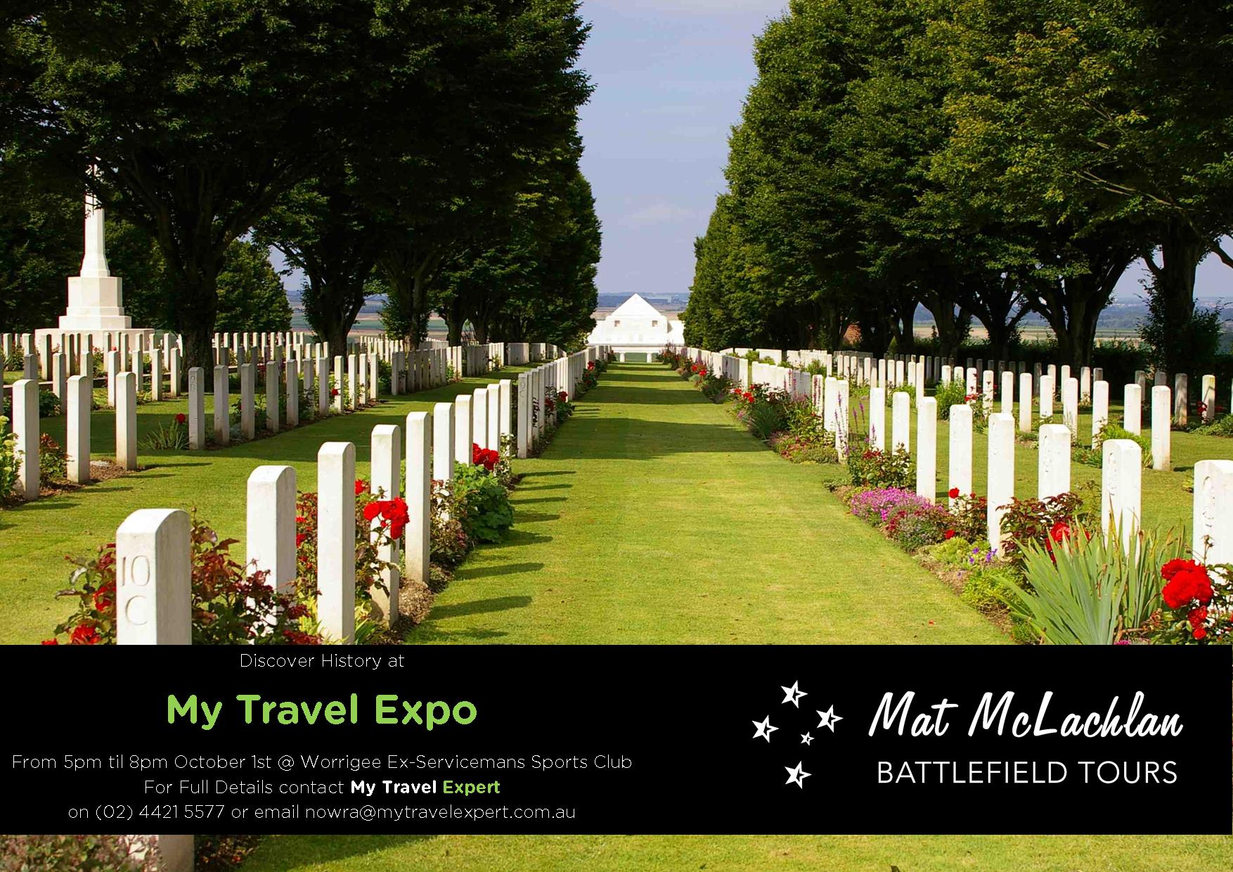 On the 1st October from 5pm to 8pm at Worrigee Ex-Servicemans Sports Club we are hosting the South Coasts largest Travel Expo – My Travel Expo, as part of our Exhibitor list we will have a representative from Matt McLachlan Battlefield Tours – one of Australia’s premier tour operators .