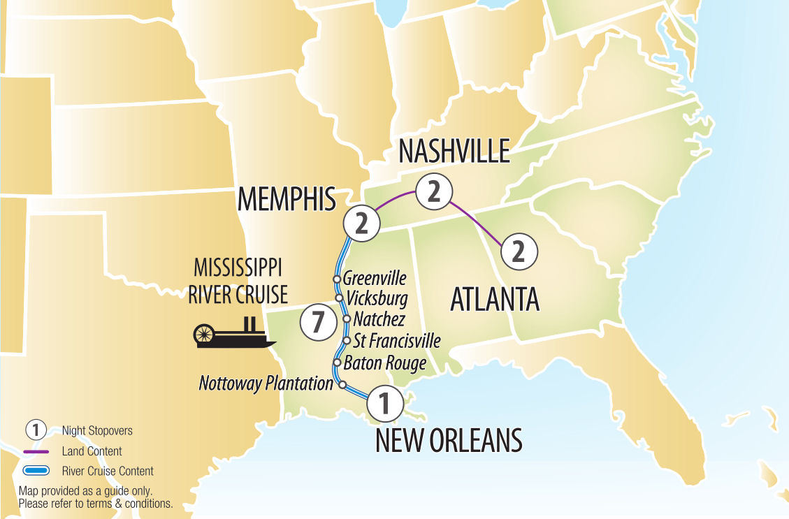 - 7 Night Mississippi River Steamboat Cruise on board the traditional and luxurious American Queen